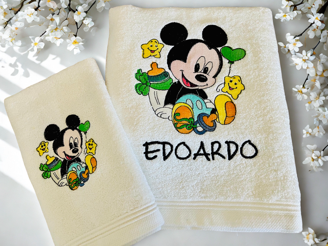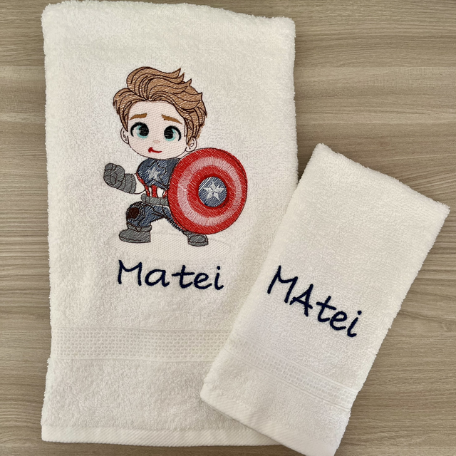 Set asciugamani spugna grande viso e piccolo con ricamo personalizzato.