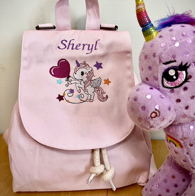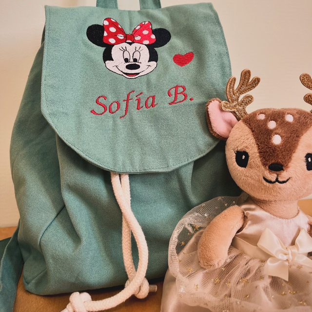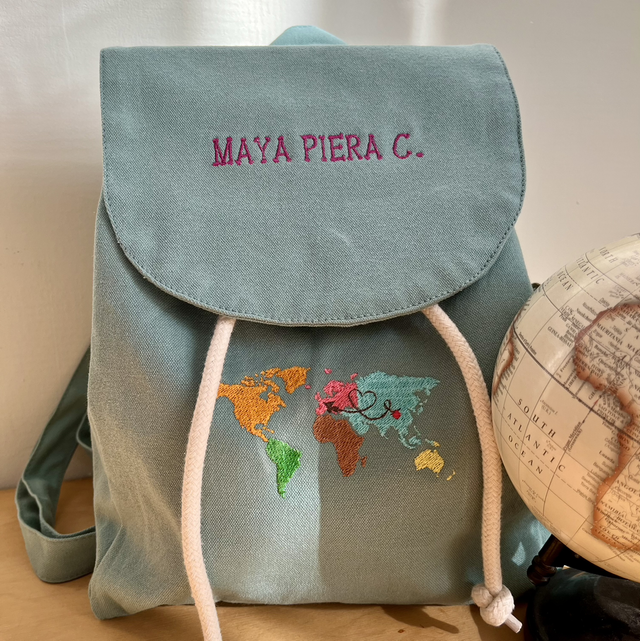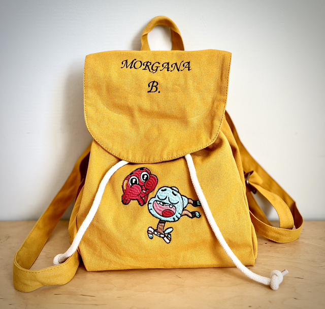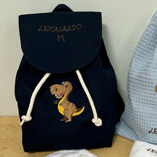 Zainetto personalizzato con ricamo in diverse colorazioni. Scrivi nelle note nome bimbo e disegno che preferisci, vedremo insieme il progetto. ☺️